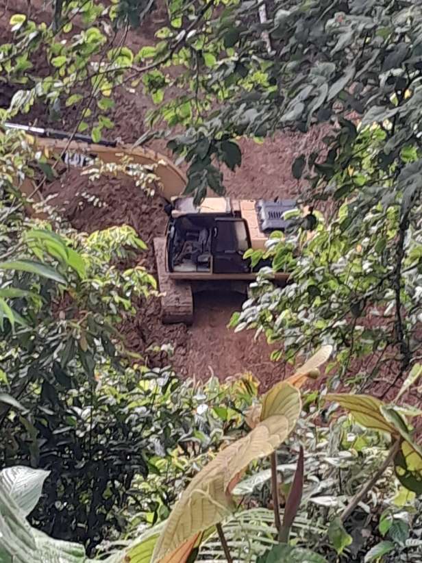 Dari hasil pantauan media pada Jumat 8/5/2025 dilokasi ada aktivitas alat berat berupa eksavator yang sedang melakukan pengerukan material tanah, terlihat sebuah daseng atau pondok peristirahatan serta beberapa orang pekerja