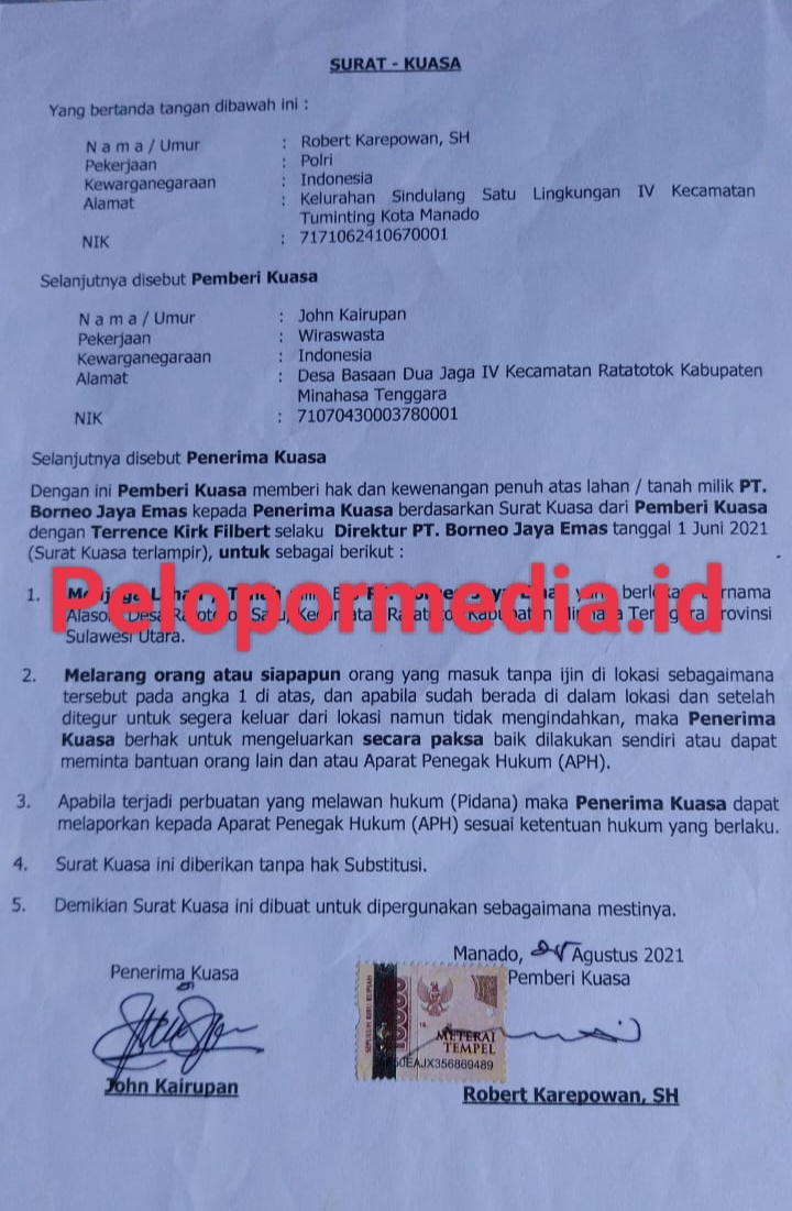 “Dalam surat kuasa jelas disebutkan bahwa saya sebagai penerima kuasa berhak melarang pihak lain melakukan aktivitas apapun di lahan tersebut, bahkan diberi wewenang untuk mengeluarkan mereka secara paksa,”