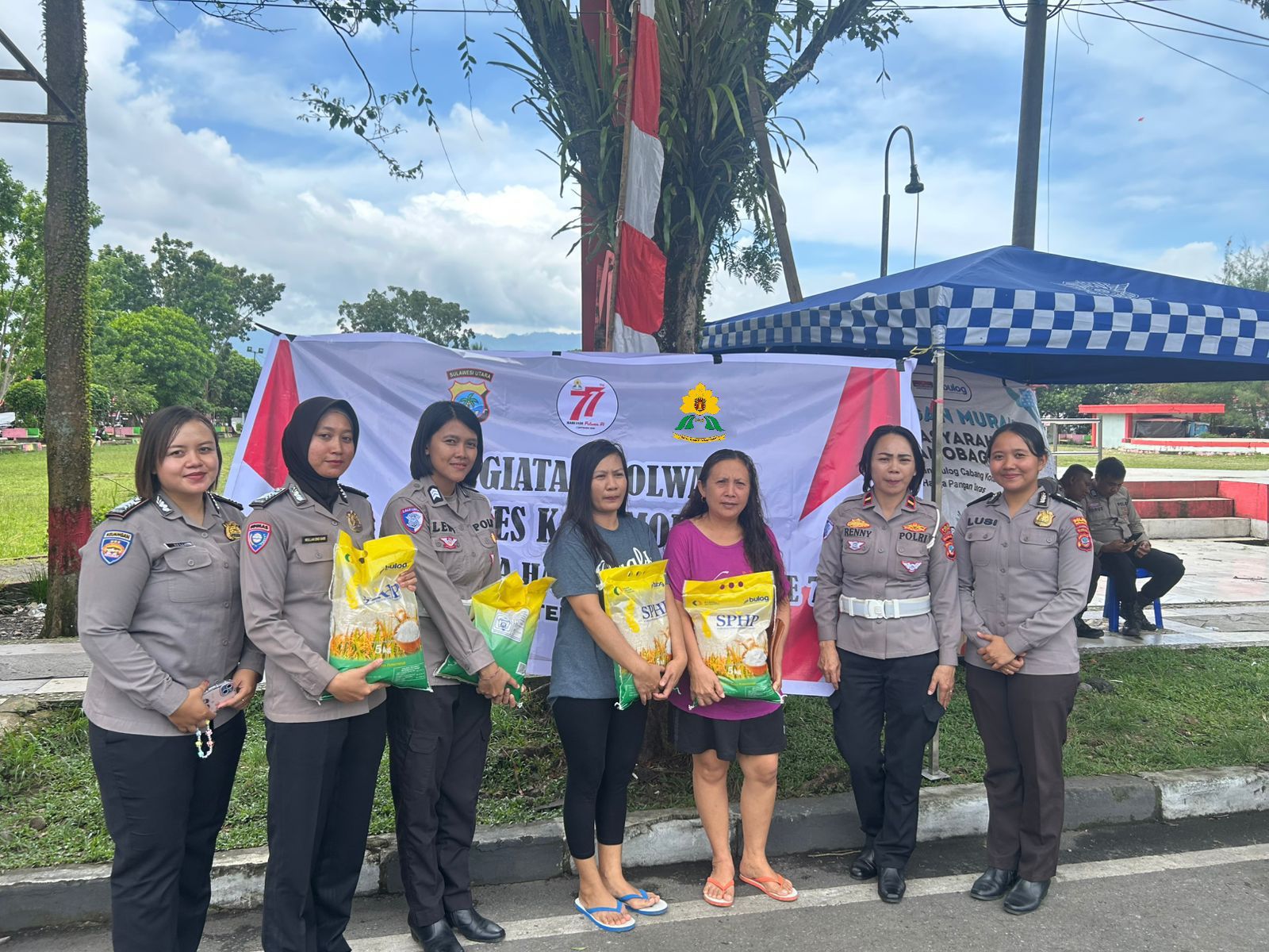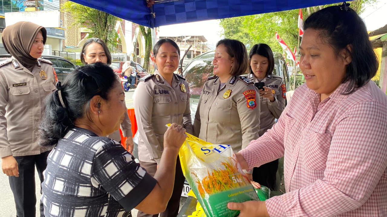 Humas Polres Kotamobagu – Personil Polisi Wanita (Polwan) ikut serta menggelar gerakan pangan murah untuk masyarakat Kota Kotamobagu, Sabtu (30/8/2025).