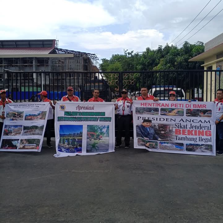 “Kemarin kami melakukan aksi di Polda Sulut dan kami diterima Kasubdit Krimsus yang langsung melaksanakan Audens dengan kami DPD LAKI. Dalam Audens tersebut ada beberapa point yang kami kemukakan terkait penanganan PETI di BMR, salah satunya adalah meminta agar pelaku PETI di Molobog yang lokasinya sudah di amankan dengan pemasangan Police Line yakni milik Ko Johan dan pemilik lahan untuk keduanya dapat diproses hukum,” terang Firdaus Mokodompit, Minggu 5 Oktober 2025.