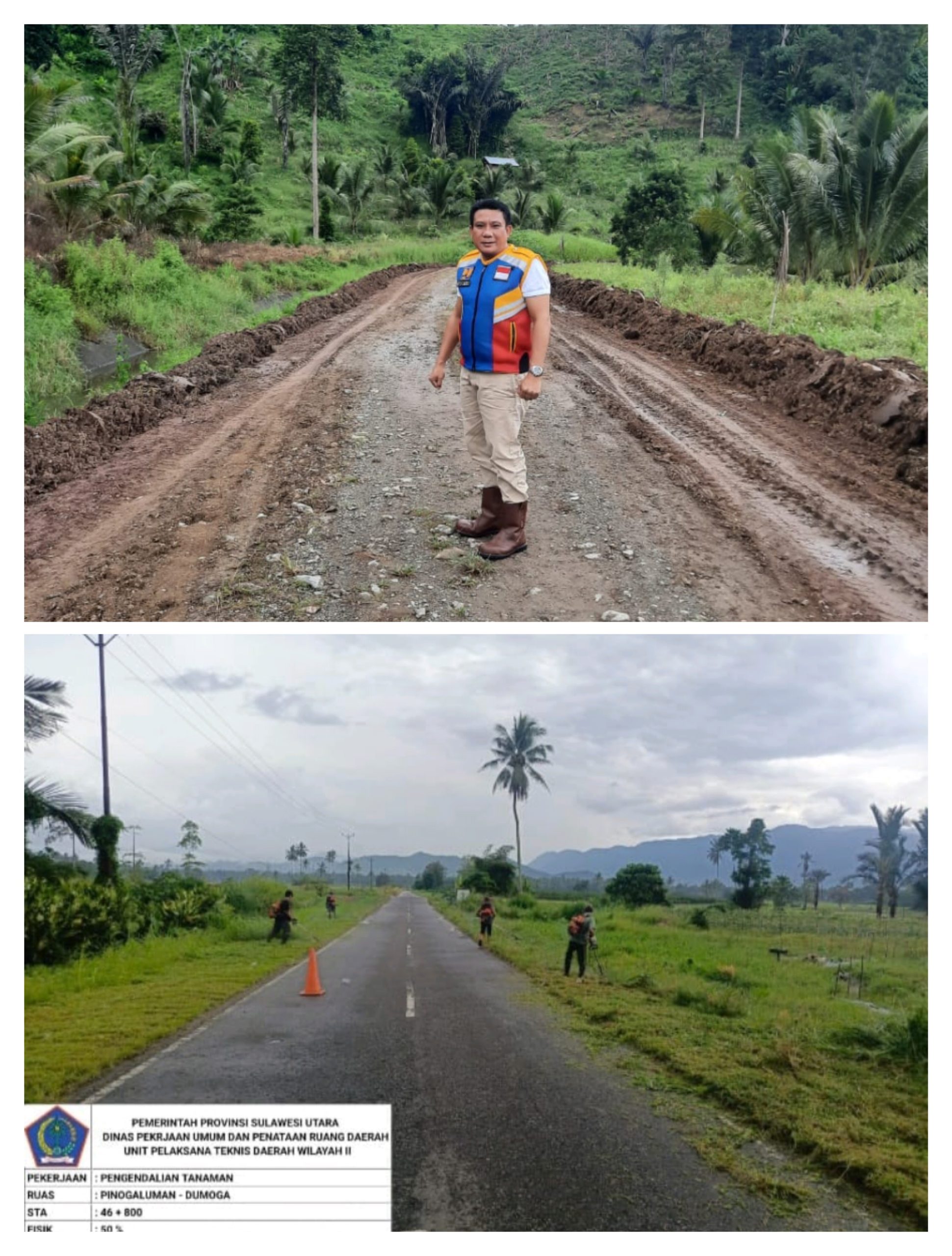 Bolmong — Pemerintah Provinsi Sulawesi Utara melalui Dinas Pekerjaan Umum dan Penataan Ruang (PUPR) Daerah, Unit Pelaksana Teknis Daerah (UPTD) Wilayah II, memastikan pekerjaan pengendalian tanaman pada ruas jalan Pinogaluman–Dumoga di STA 46+800 telah rampung 100 persen. Pekerjaan yang dikerjakan oleh CV Nirwana Karya ini merupakan bagian dari program pemeliharaan rutin untuk memastikan kondisi jalan tetap aman dan bebas gangguan vegetasi.