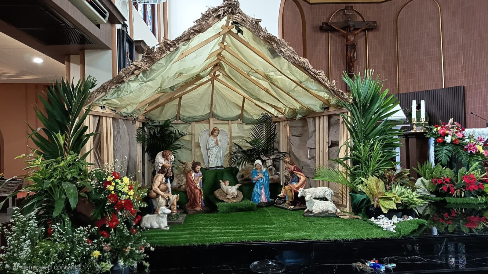 ‎Menariknya, seluruh bahan Kandang Natal tersebut dibuat dari kayu-kayu limbah yang sudah tidak terpakai seperti kardus bekas dan bahan daur ulang Potongan-potongan kayu tersebut dirangkai dengan sentuhan seni dan kreativitas tinggi oleh tim panitia, sehingga menghasilkan ornamen Natal yang indah, sederhana, namun tetap elegan tanpa menggunakan bahan-bahan mewah.