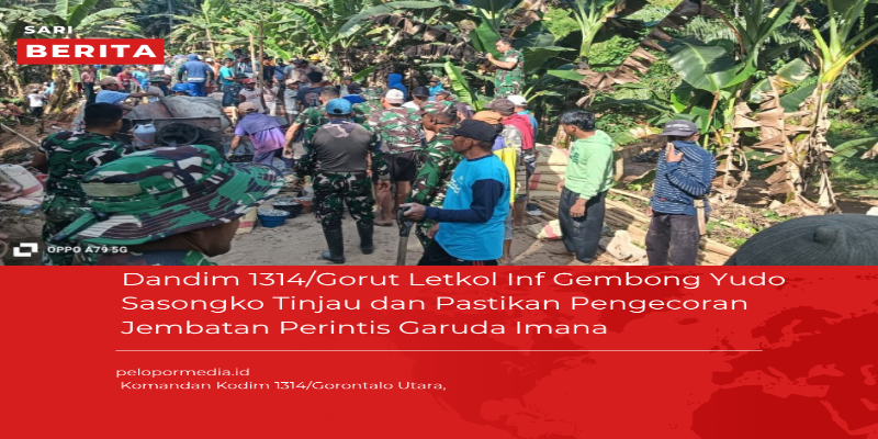 Komandan Kodim 1314/Gorontalo Utara, Letkol Inf Gembong Yudo Sasongko, turun langsung meninjau pelaksanaan pengecoran Jembatan Beton Perintis Garuda yang menghubungkan Desa Imana dan Desa Wapalo, Kecamatan Atinggola, Rabu (8/4/2026).
